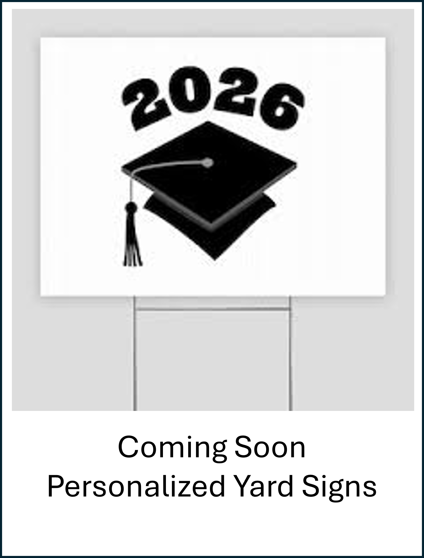 Shop No results found Senior Yard Sign Sales Coming Soon * * Senior Yard Sign Sales Coming Soon * * Senior Yard Sign Sales Coming Soon * *